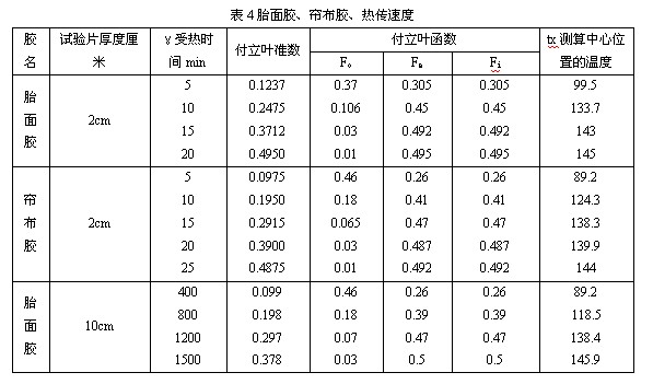 胎面膠(50份合成膠)導溫系數0.00165;簾布膠(30份合成膠)導溫系數0.00130
